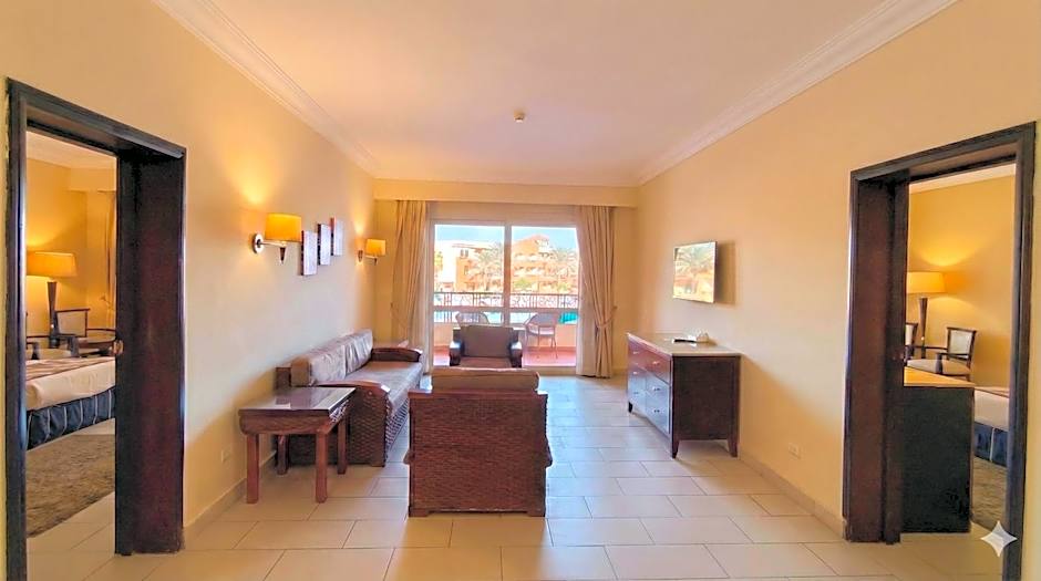 Guests will have a special experience as this family room provides a pool with a view. The spacious family room offers air conditioning, a mini-bar, as well as a private bathroom featuring a walk-in shower and a bath. Boasting a terrace, this family room also features a seating area, a safe deposit box and a flat-screen TV with satellite channels. The unit offers 3 beds.